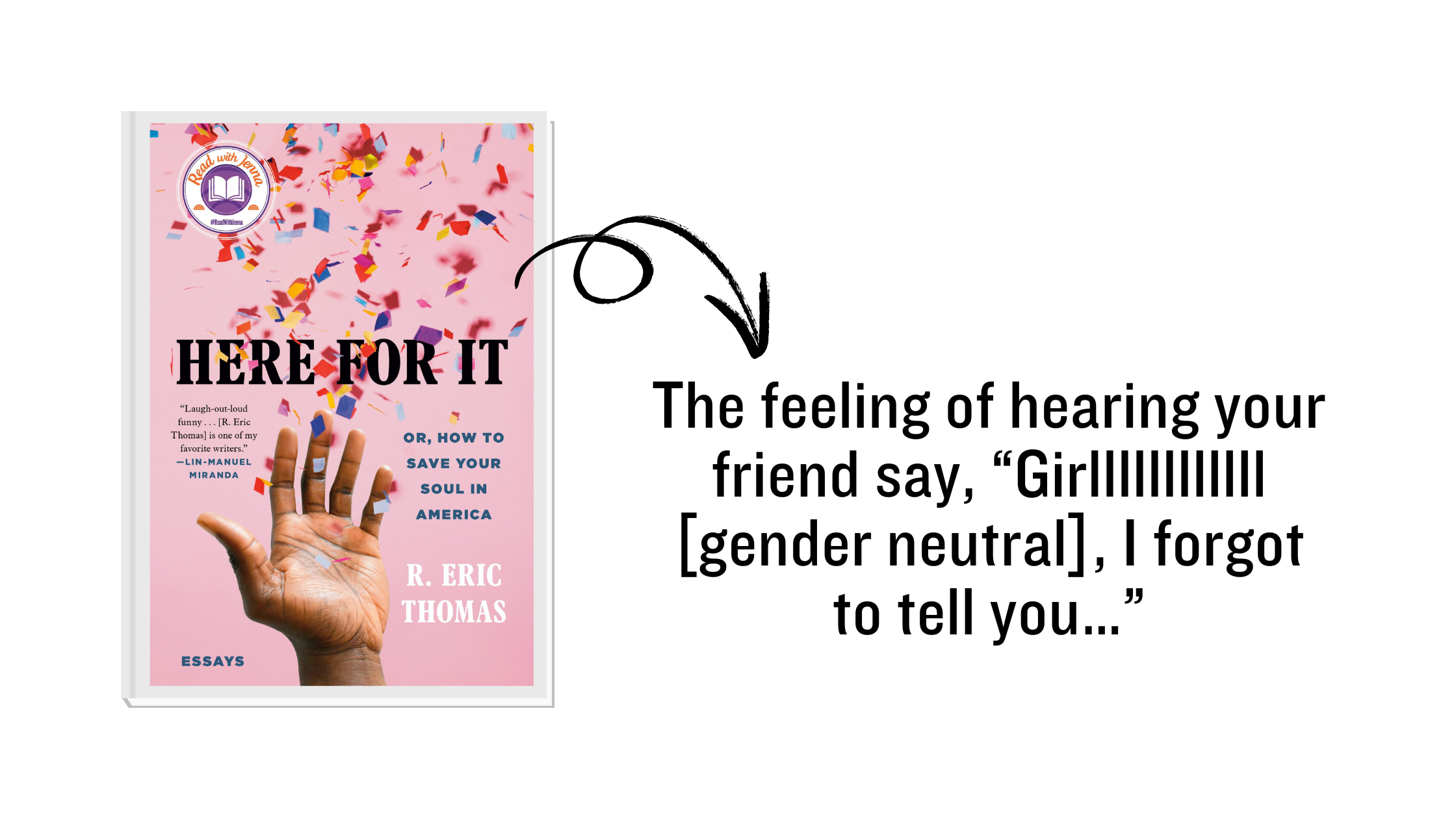 First things first: R. Eric Thomas is hilarious and I love him. Here for It, his debut essay collection, brilliantly combines memoir with cultural criticism, injecting humor into complex and challenging situations.