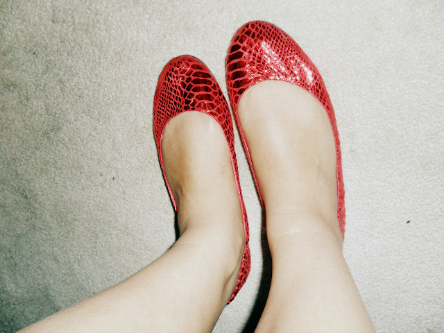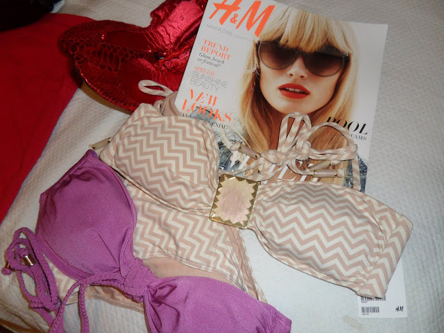 Bikini pieces and red metallic flats: H&M