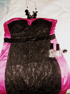 Pink and black dress, jewelry: Charlotte Russe