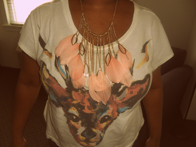 DEER SHIRT AND FEATHER NECKLACE – FOREVER21