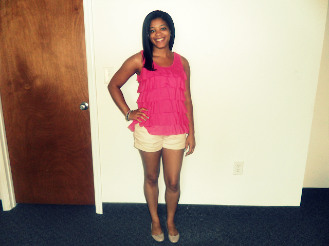 A few pictures my future roommate and future blog photographer, Andrea, took. I thought what she was wearing looked cute so the third picture is one I snapped of her. The pink ruffles felt very feminine, as you could imagine! I will be moving out of my apartment and back home for a couple weeks, so I believe that will have a positive effect on my outfits and pictures. Shopping for apartment necessities should be half-fun, too.